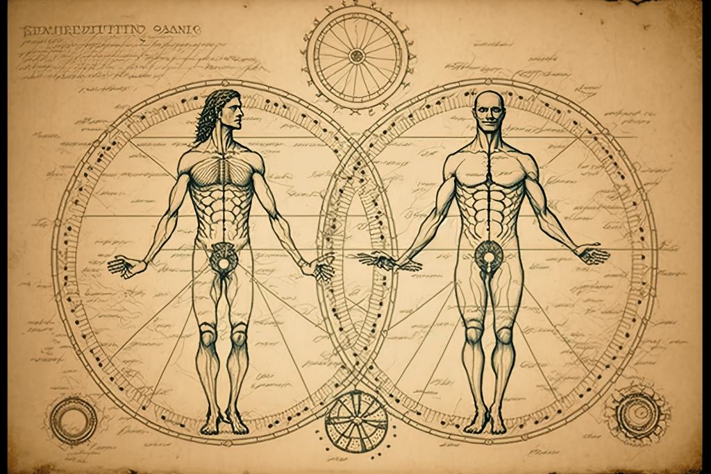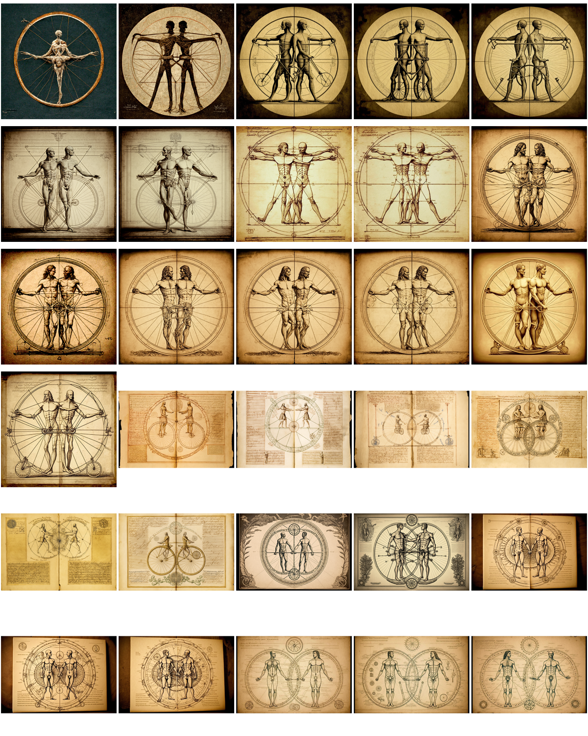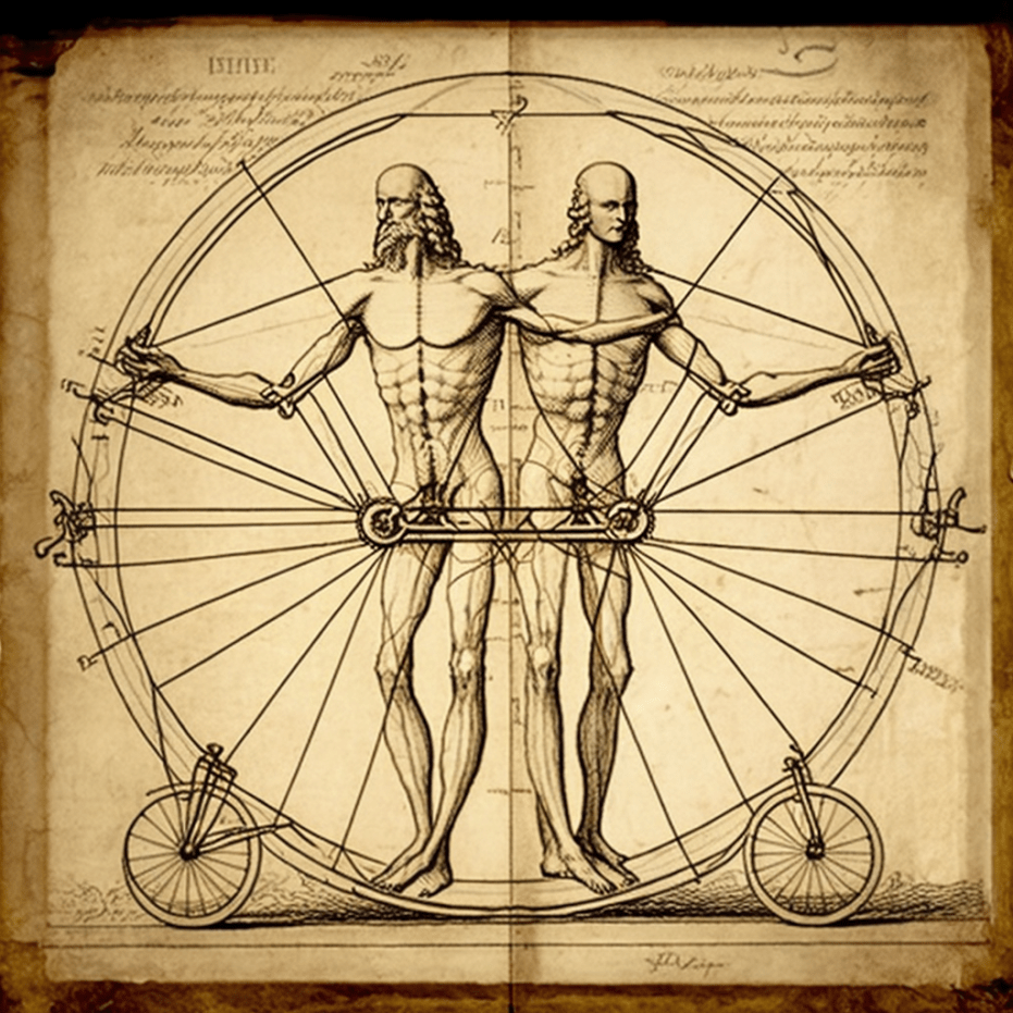 A bicycle designed for two Vitruvian men