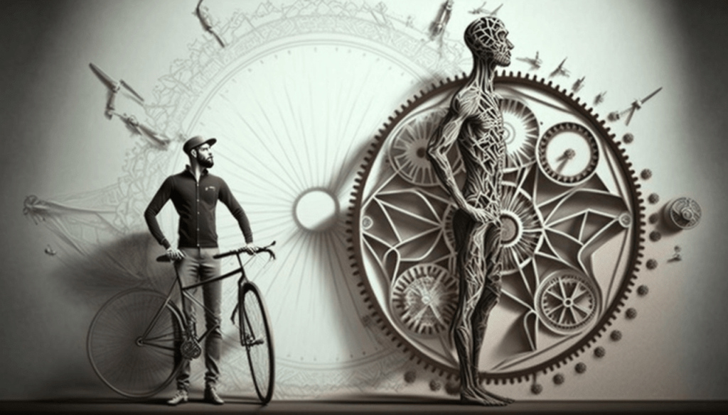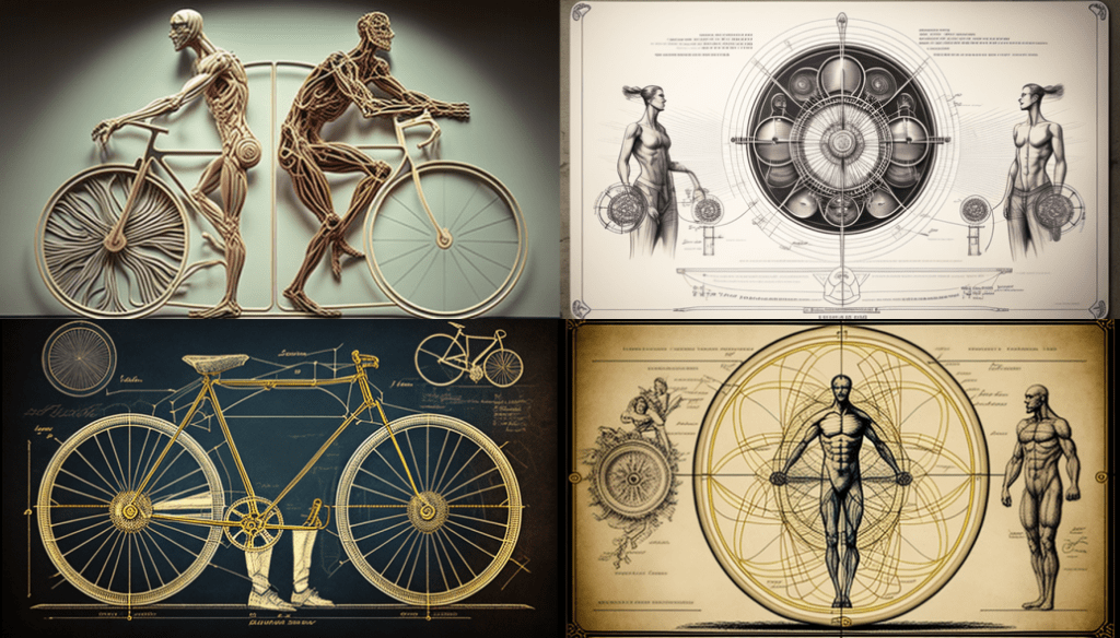 Two Vitruvian men on a bicycle