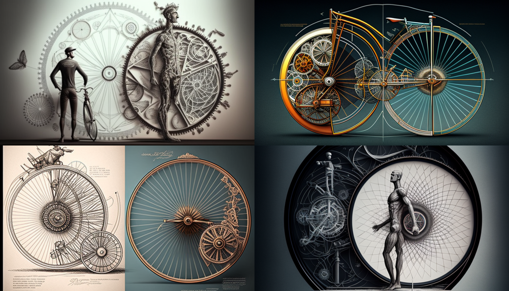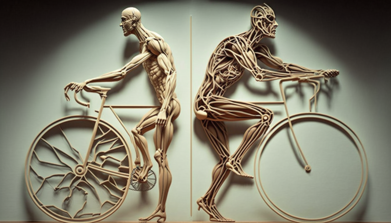 Two Vitruvian men on a bicycle