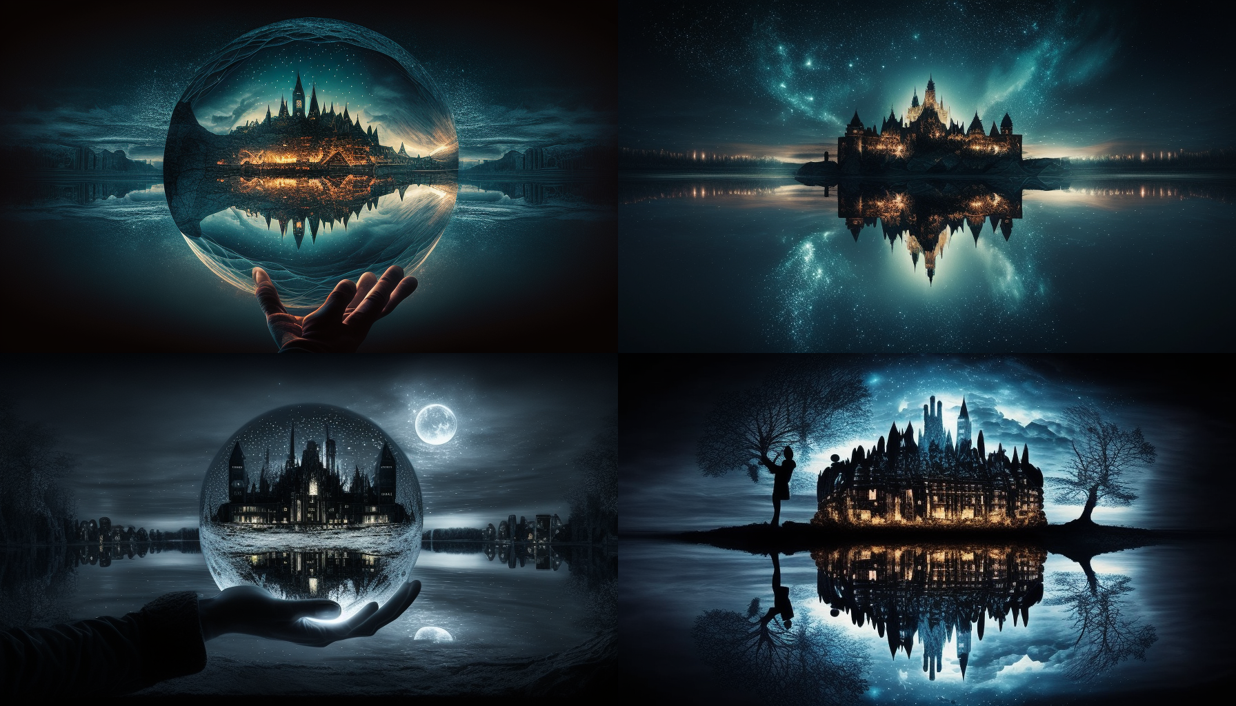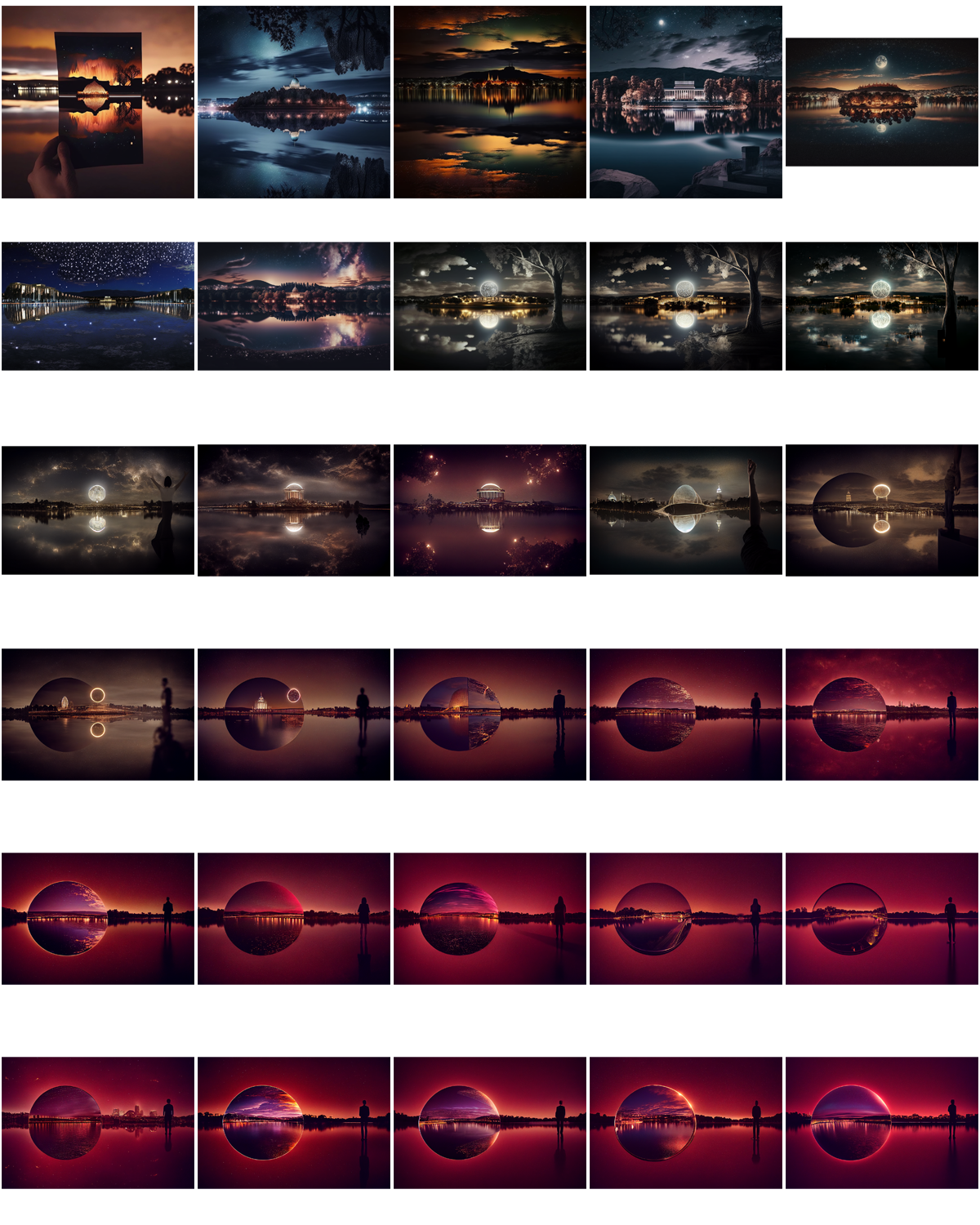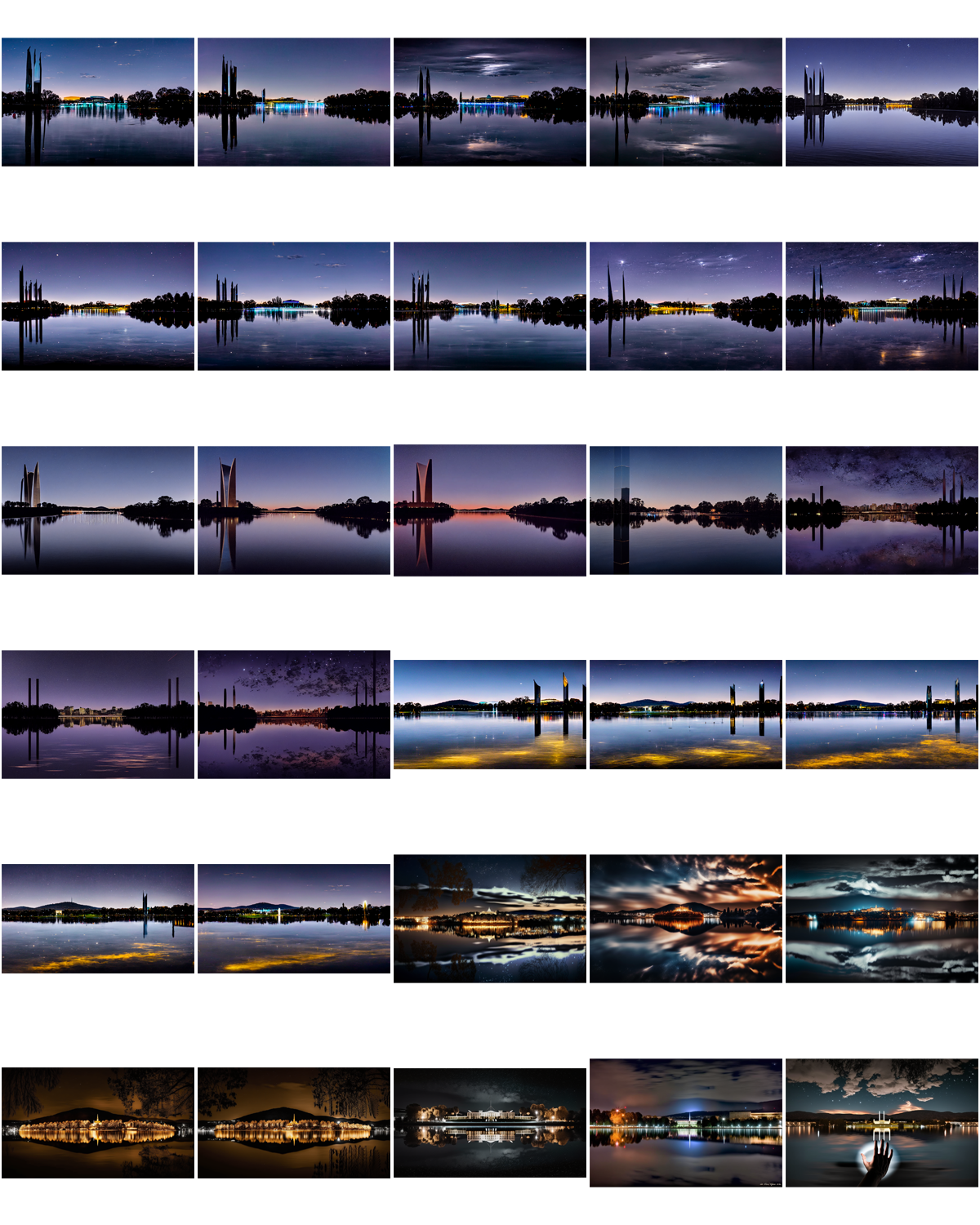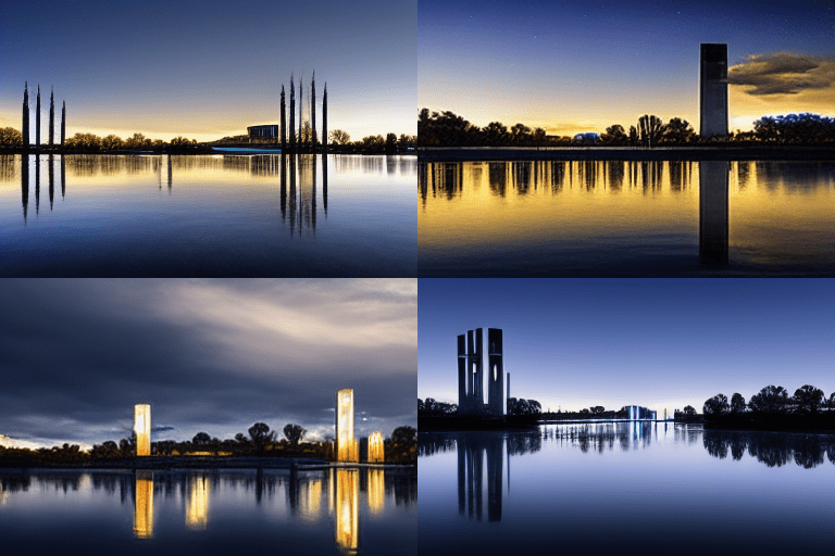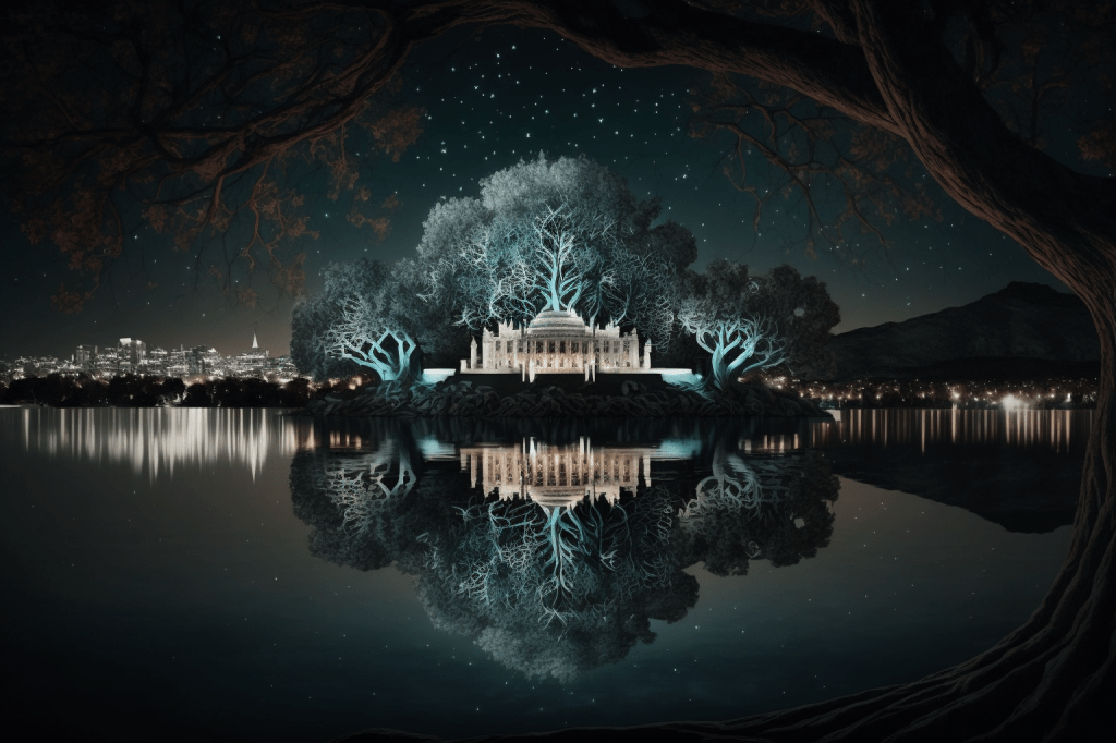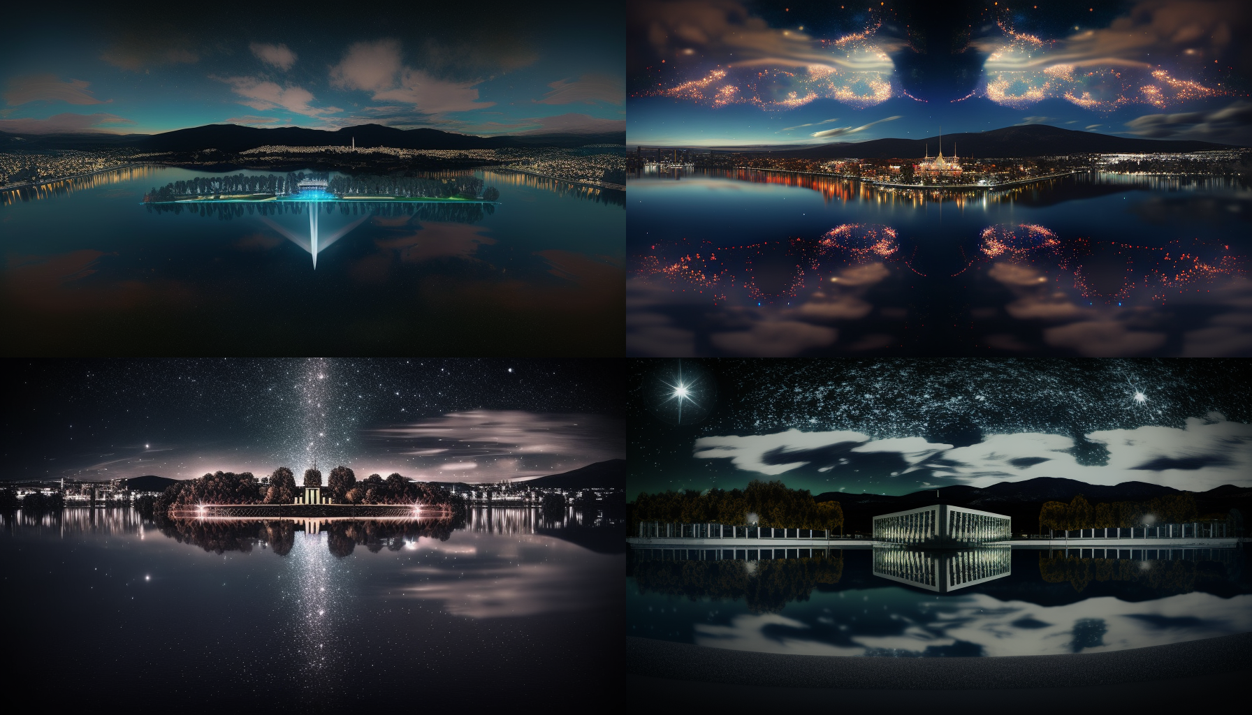 And following that, my next thoughts were that these look like a generic set of images for a speculative fiction novel (especially a graphic novel) or a TV show. There is a looming quality about most of them, a hint of menace in the swirl of light and movement, a bit of a gothic element to the buildings in several of them (those that didn’t replicate Parliament House); or those with moons and sparkly stars / lights that to me seem to infuse a sort of old-fashioned romanticism.