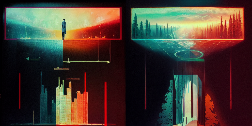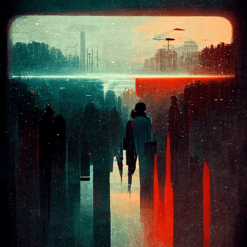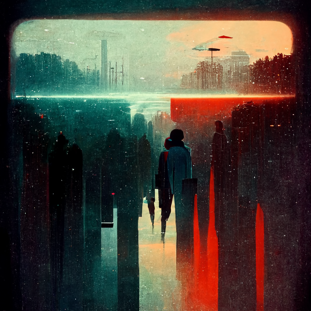 I thought the prompt would produce something more robotic, industrial, maybe a kind of man versus machine motif. What it produced however was more abstract, even a bit poetic?