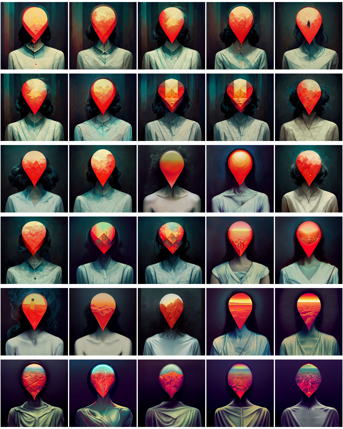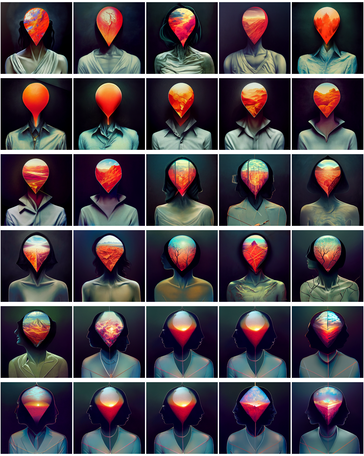 The first person who appears in the series feels closer to nature, with the naked torso and wild hair, and then they get progressively more ‘civilised’ and generic as the image in the mind become more detailed.