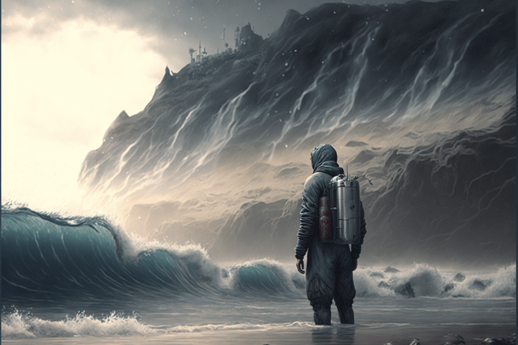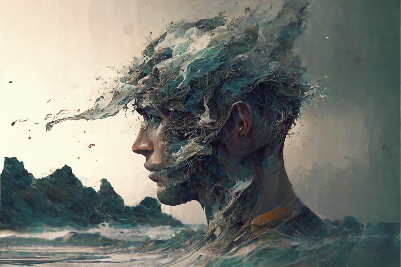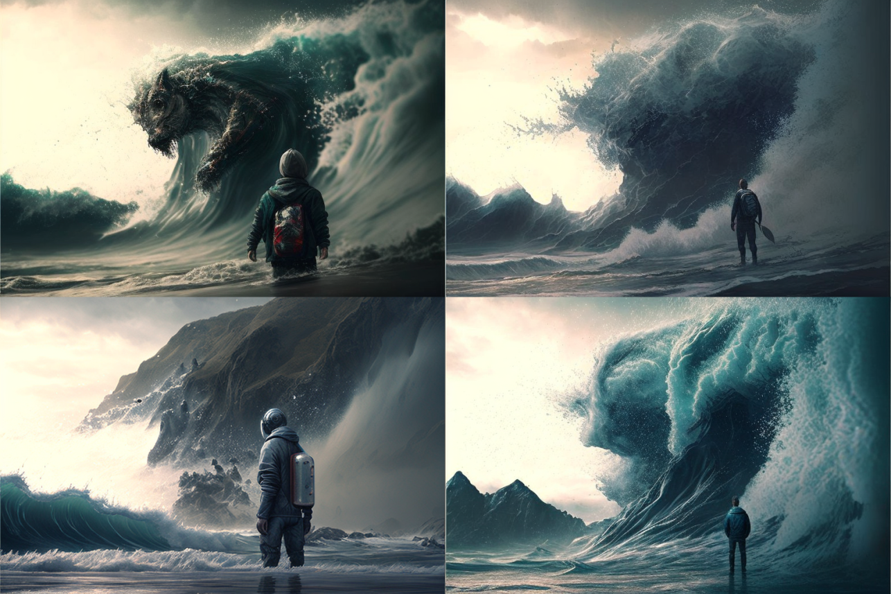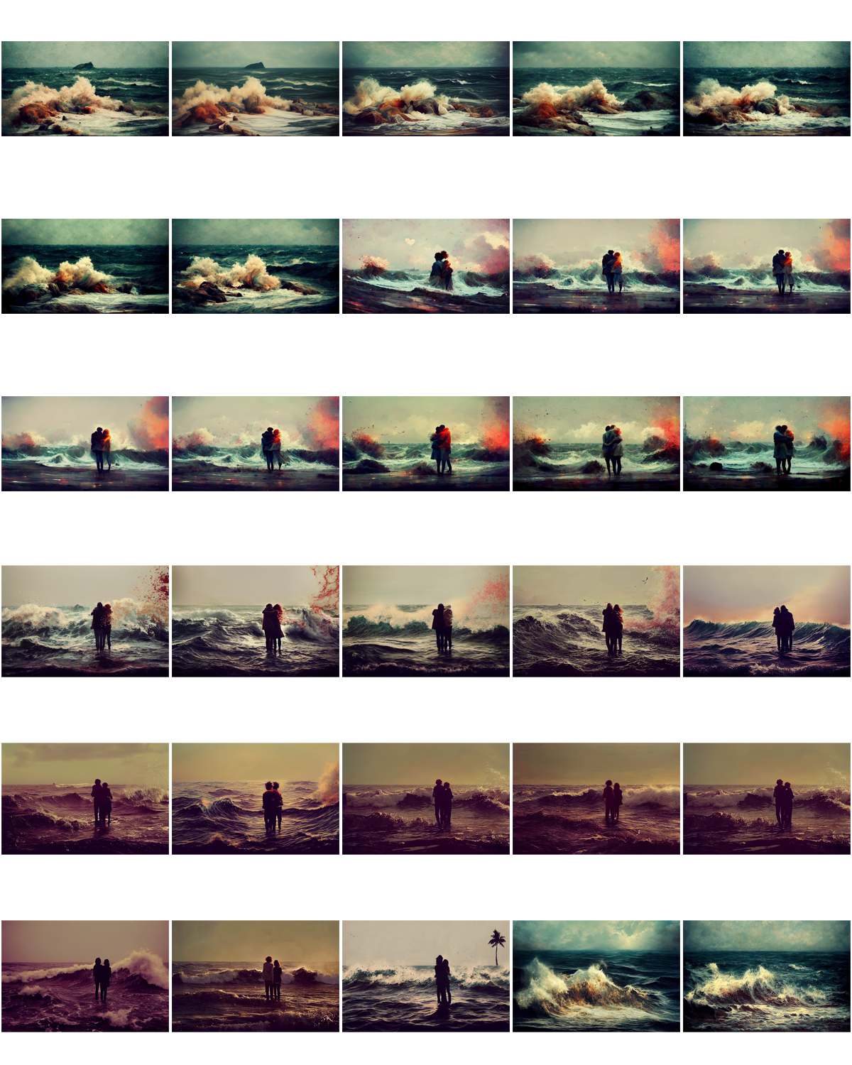 Overall, I see the images and think of the brutality that is part of human nature and how it’s just as prevalent as kindness or love. The bloody waves make me think that often the things that delight us the most end up smashing us in half. A bit like – well you’re fucked either way. It’s like the AI sees and privileges the destructive side of love humans tend to ignore until they are in it.