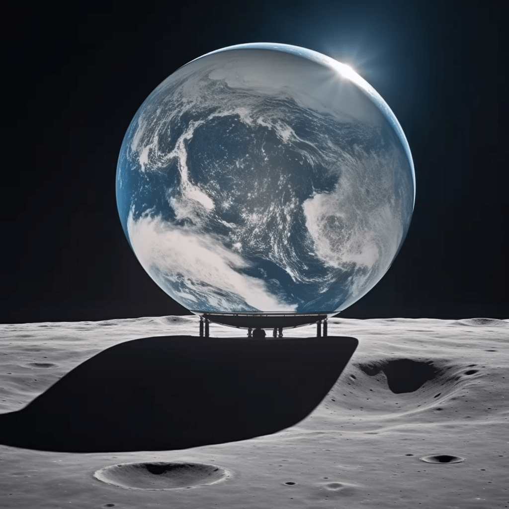 The Earth reflected in a giant mirror installed on the surface of the moon.