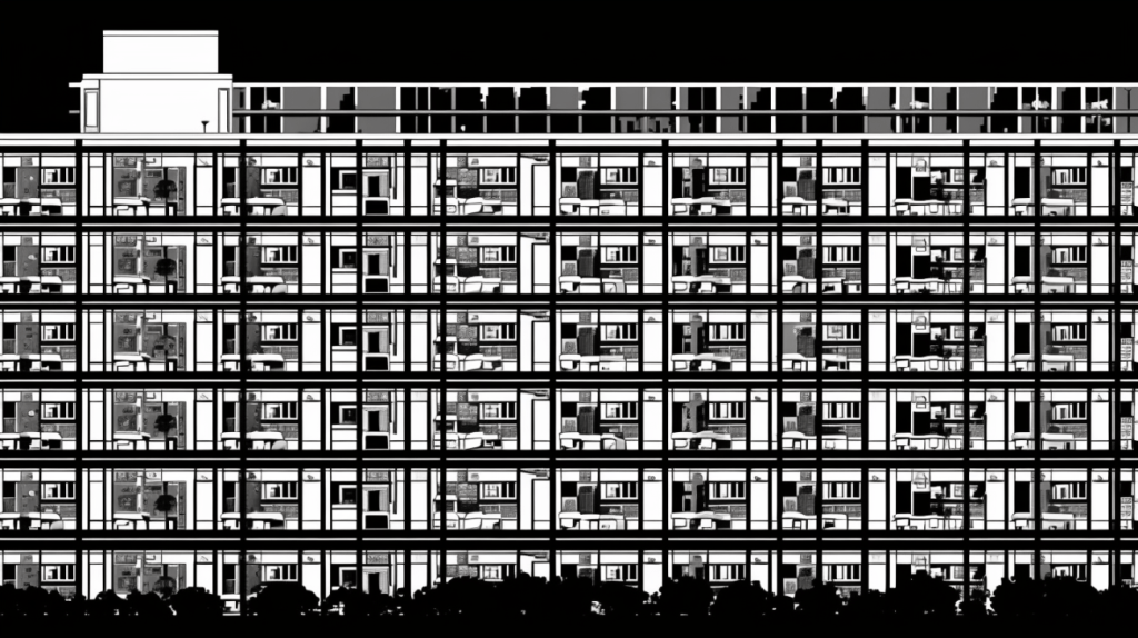 In the style of CCTV surveillance footage, dark shadows, low resolution, pixelated, black and white