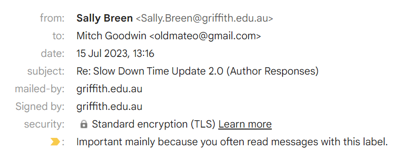 Breen, S., Goodwin, M. & Midjourney, “Sally Breen – Feel It,” in Slow Down Time, Goodwin, M. Ed. Melbourne: Word Press, April 17, 2023, https://slowdowntime.com/sally-breen/